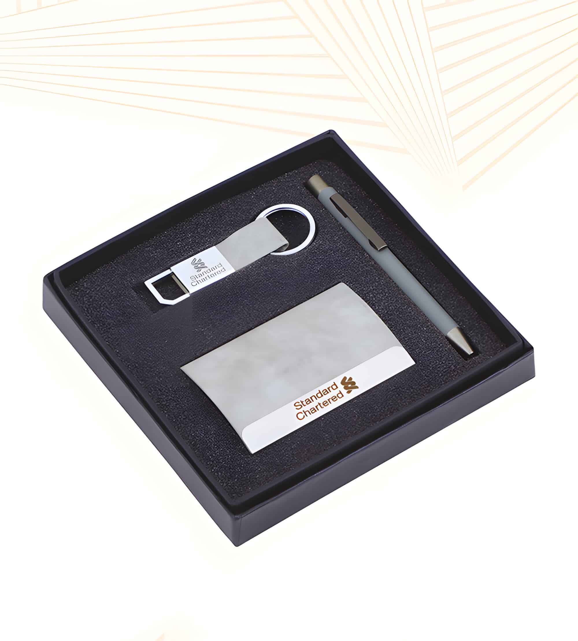 Delight your clients and employees with our Corporate Gift Sets, designed with essentials like diary, keyring, visiting card holder, wallet, bottle or sipper. Perfect for corporate gifting, promotional events, employee rewards and branding campaigns. Each set comes in box packing and can be custom branded with your logo.